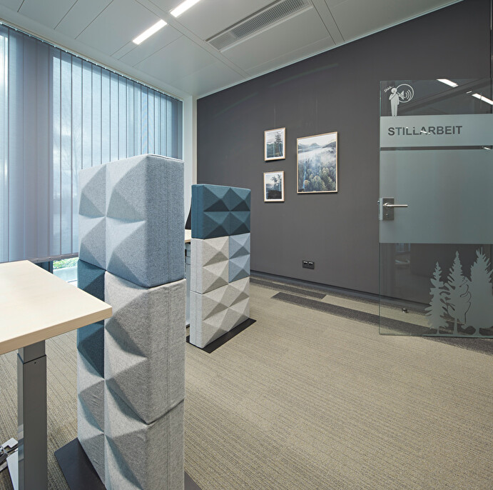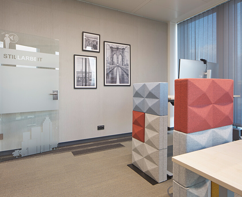 Darüber hinaus sind den Mitarbeitenden ausreichend Rückzugsmöglichkeiten geboten, um sich jederzeit von den offen gestalteten Bürozonen für konzentriertes Arbeiten, für Online Meetings oder vertrauliche Gespräche zurückziehen zu können.