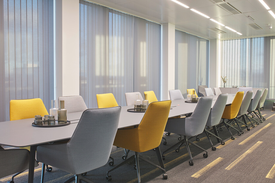 Sinnvoll kuratierte Zonierungen bieten Möglichkeiten für kommunikatives Arbeiten im Team, für Besprechungen in großer oder kleiner Runde, oder ruhige Rückzugsmöglichkeiten. Herausragende Flächen, wie die Sportfläche im Erdgeschoss und die Eventfläche im 4. Obergeschoss, mit Blick auf den Rhein und den Schiersteiner Hafen, bieten über die beschriebene Raummodule hinaus ein ideales Umfeld, um zusammenzukommen. Gezielt wurden Anreize geschaffen, um die Mitarbeitenden nach drei Jahren Corona zurück in das Büro zu holen. Die Konzeption des K7 lädt zudem ein, die Mitarbeitenden der nebenliegenden Gebäudeteile des SCHUFA-Campus, die Kommunikationsflächen ebenso zu nutzen mit dem Ziel, eine Durchmischung und eine Abteilungs- bzw. Bereichsübergreifende Kommunikation zu fördern.